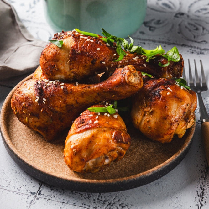 Pastured-raised, non-vegetarian-fed, worm-eating, bug-scratching, corn free, soy free, non-GMO PRIMAL Chicken. This bird was raised how chickens are meant to live: outside, on grass, with room to forage. This might very well be the best chicken in the world and will surely be the best chicken you have ever had.