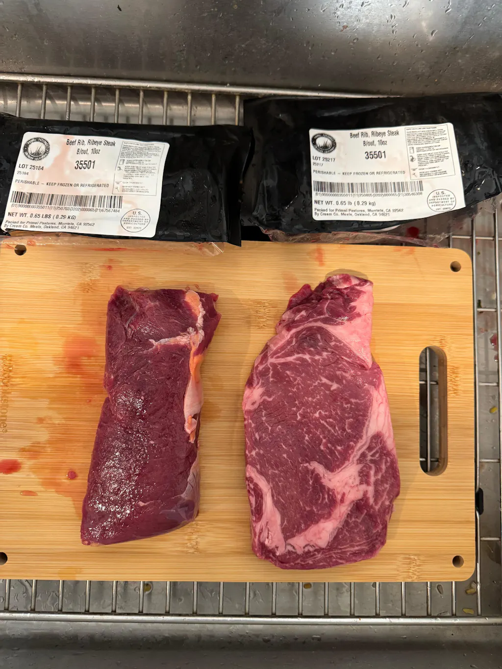 The steak everyone knows and few do right. Ribeye comes from the upper rib section and is prized for its rich marbling and bold, beef-forward flavor. Ours is grass-fed and grass-finished, which means every bite stays juicy without feeling heavy. The fat melts as it cooks, delivering depth, tenderness, and that unmistakable steakhouse experience at home. Season simply. Cook hot. Let the beef speak for itself.